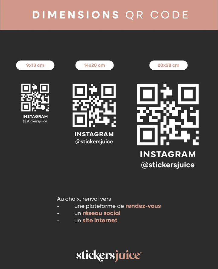 Augmentez votre visibilité en ligne ! Les stickers QR Code personnalisables pour vitrine vous permettent de rediriger vos clients directement vers vos profils sociaux. Facile à poser il suffit de le scanner avec le téléphone pour accéder à votre réseau social. Stickers QR Code idéaux pour Instagram, Facebook, Linktree etc.